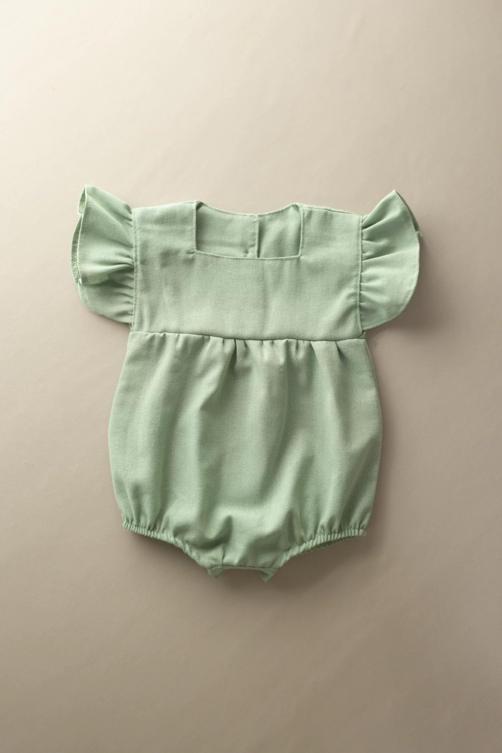 Romper com babados na cava manga que trazem um toque romântico e fechamento por botões nas costas.