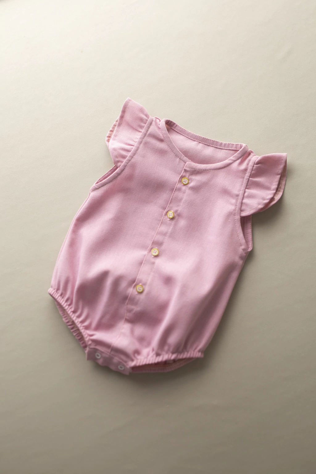 Romper sem mangas, com babados na cava, que trazem um toque de ternura e charme. Possui fechamento frontal por botões. Com estilo e conforto, deixe sua princesa brilhar com esse romper encantador, que celebra a delicadeza da infância com muito glamour.