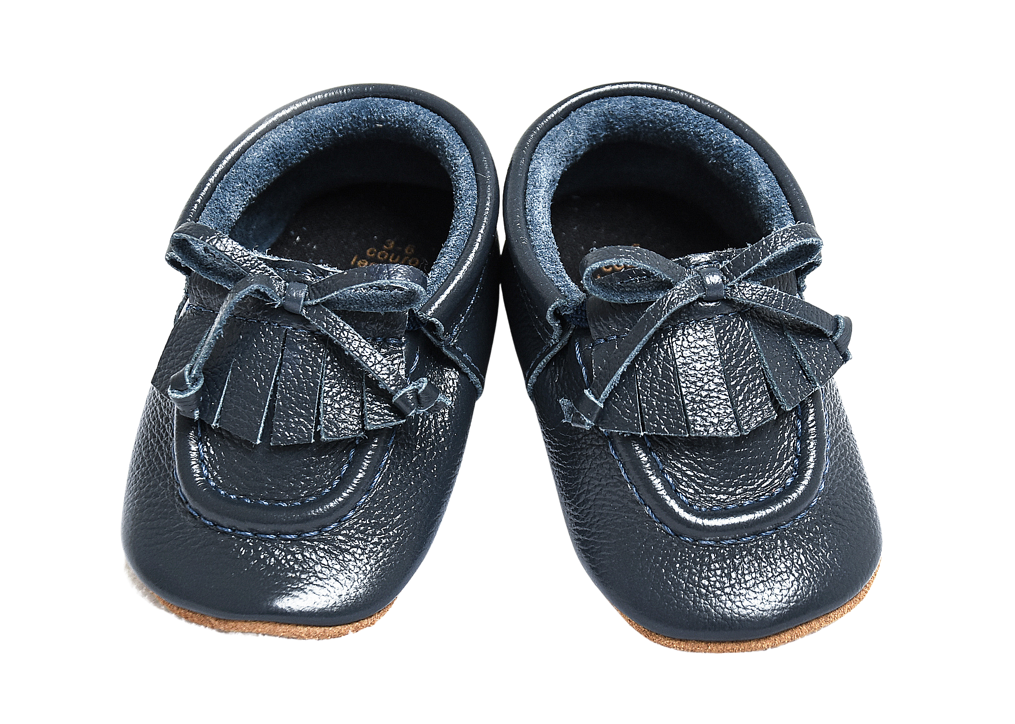 Sapato em couro legítimo com detalhe frontal em franjas.
